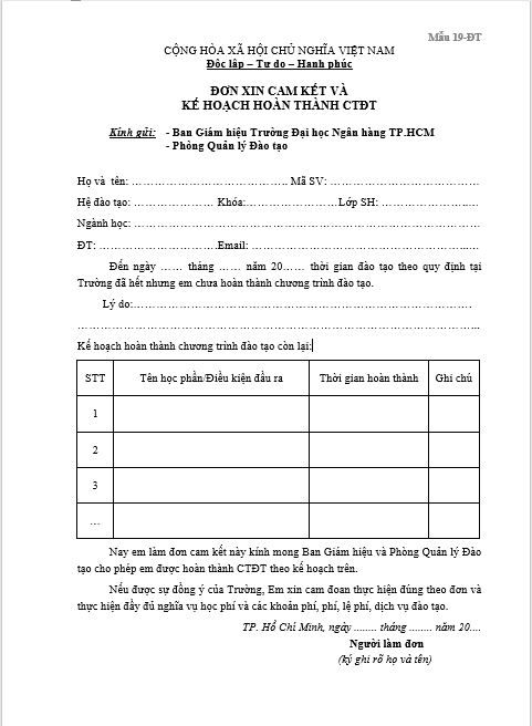 Đơn cam kết và kế hoạch hoàn thành CTĐT |