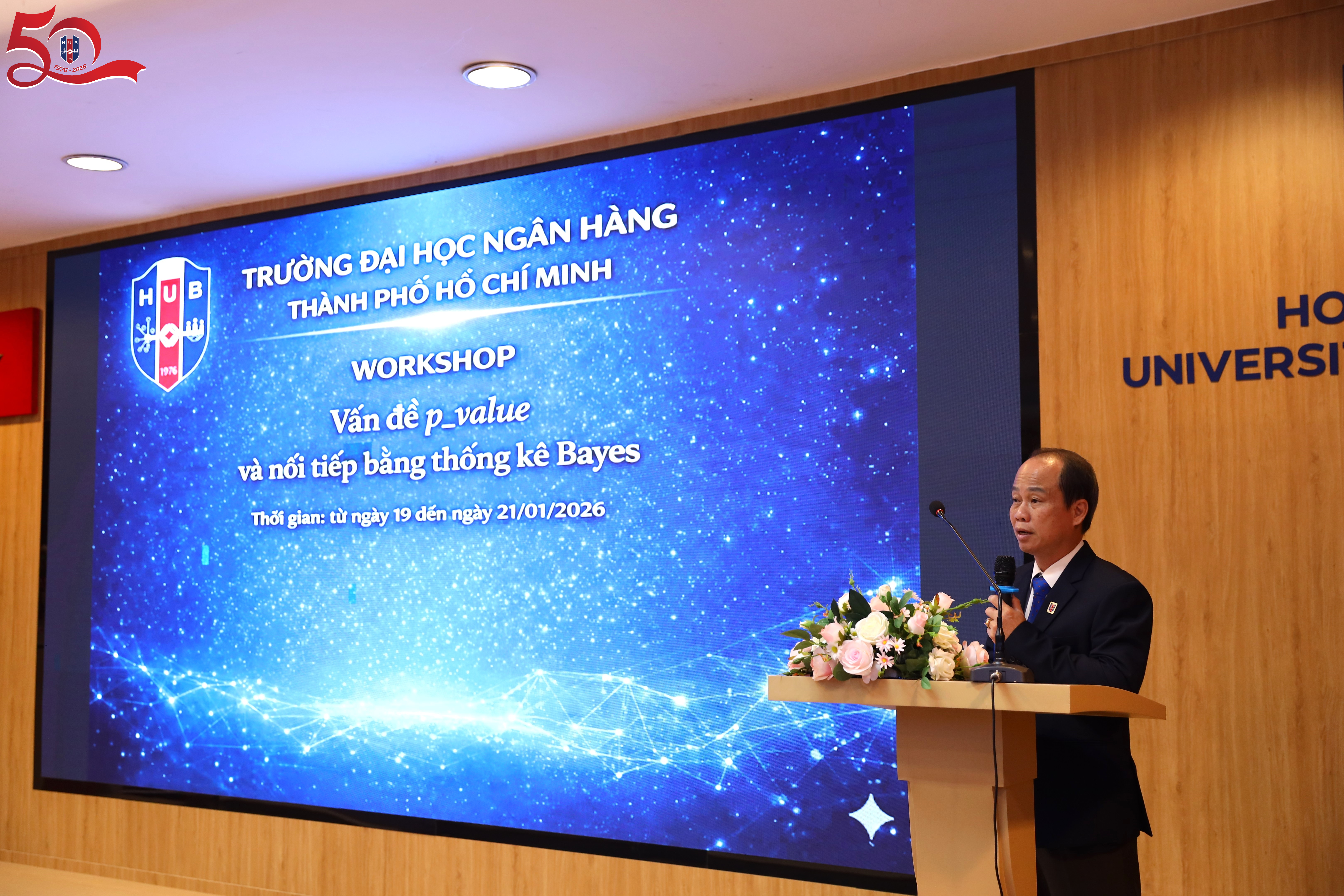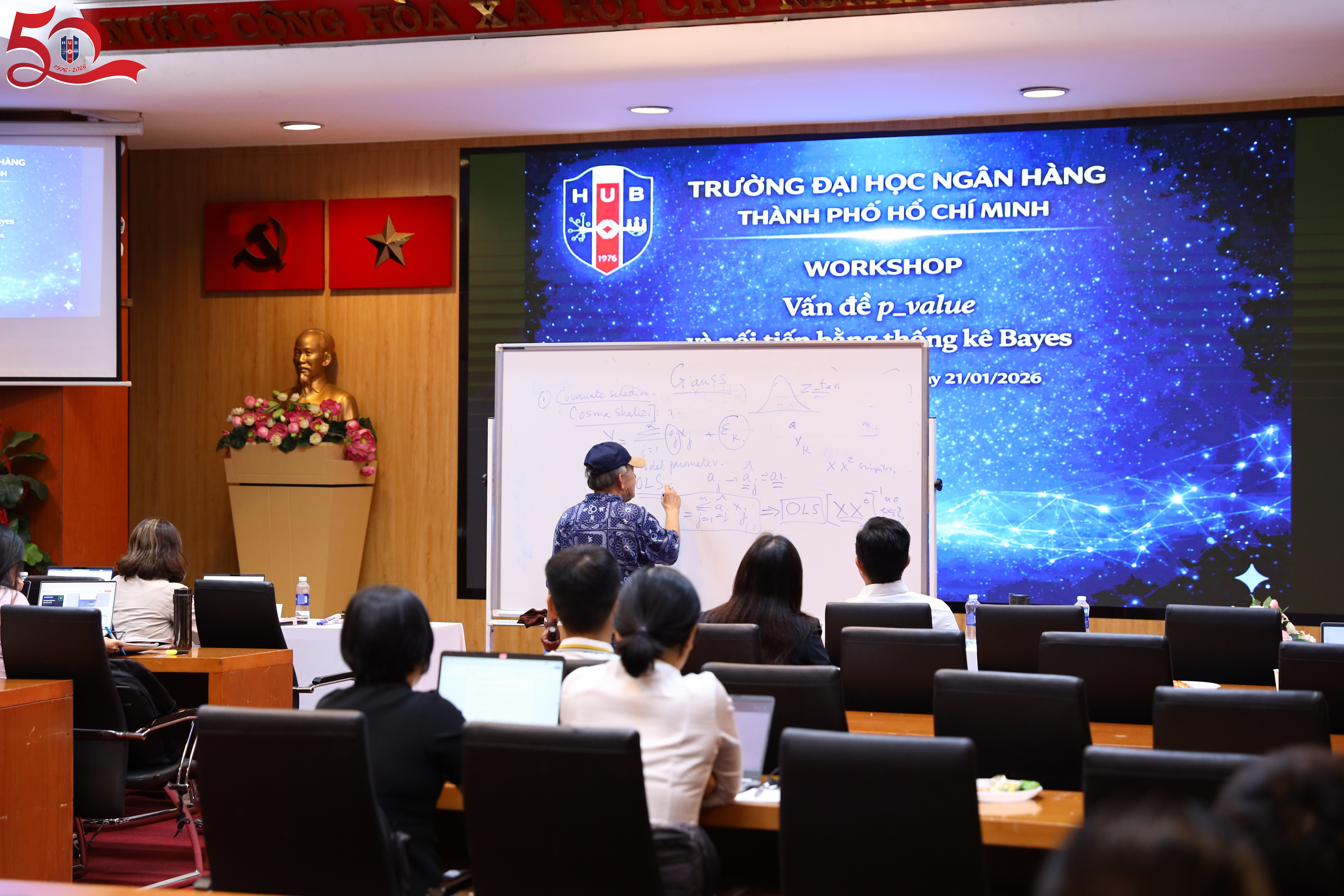 Trong bối cảnh nghiên cứu khoa học ngày càng đòi hỏi các phương pháp phân tích dữ liệu không chỉ chính xác mà còn có khả năng giải thích rõ ràng, minh bạch, việc tiếp cận và vận dụng các phương pháp thống kê hiện đại đang trở thành yêu cầu thiết yếu đối với hoạt động đào tạo và nghiên cứu sau đại học. Sáng ngày 19/1/2026, Trường Đại học Ngân hàng TP. Hồ Chí Minh (HUB) chính thức khai mạc workshop “Vấn đề p_value và nối tiếp bằng thống kê Bayes” do Khoa Sau đại học chủ trì. Chương trình diễn ra trong không khí nghiêm túc, học thuật, với sự tham dự của đông đảo giảng viên, nghiên cứu sinh, học viên cao học trong và ngoài Trường.