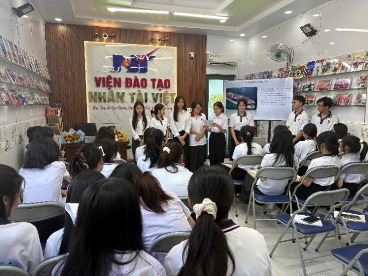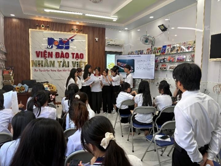 Các bạn sinh viên tiến hành trình bày và thảo luận cùng nhau trong lúc báo cáo