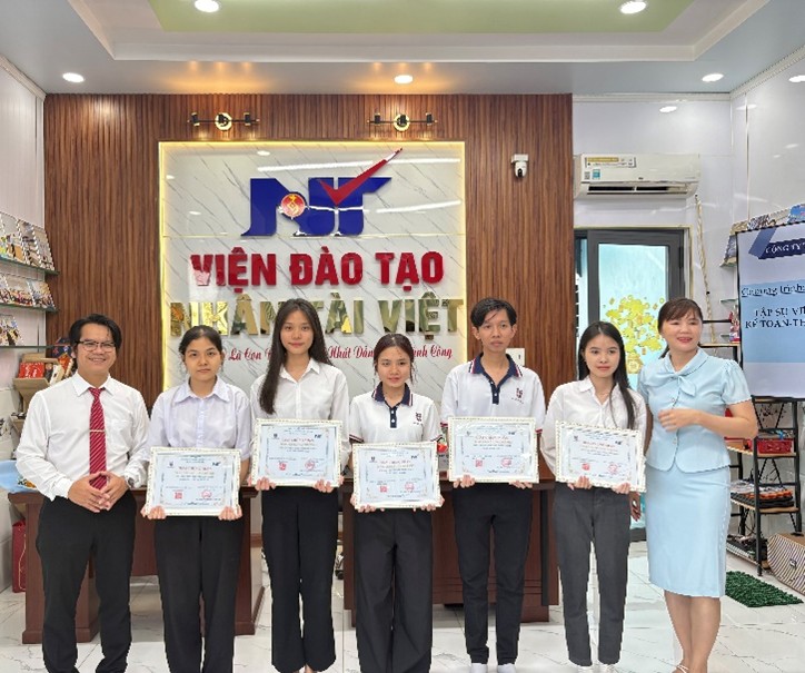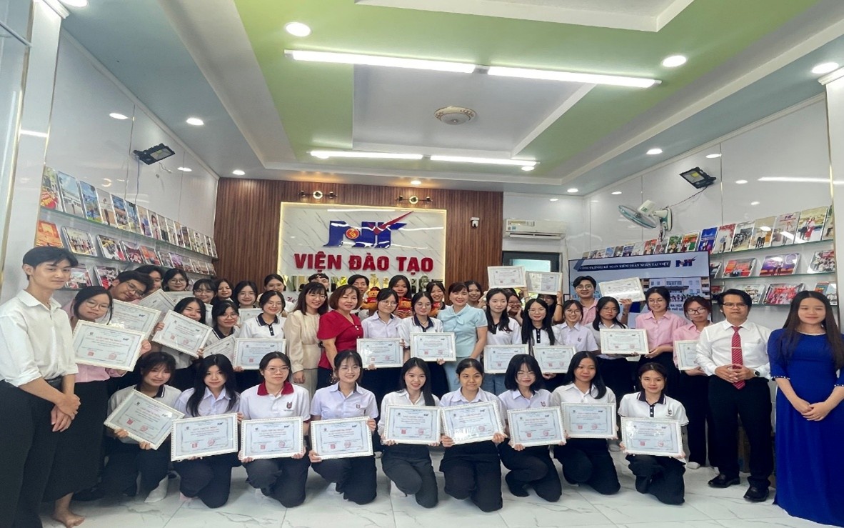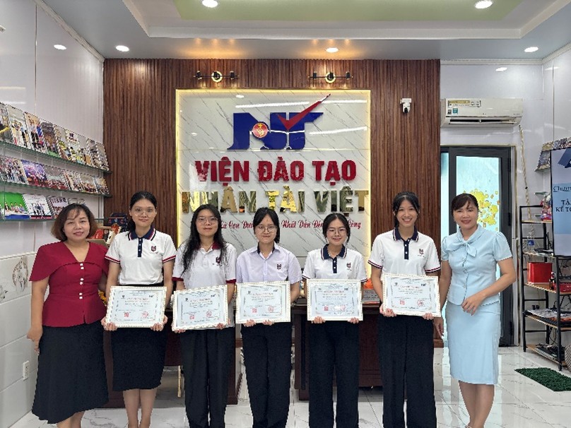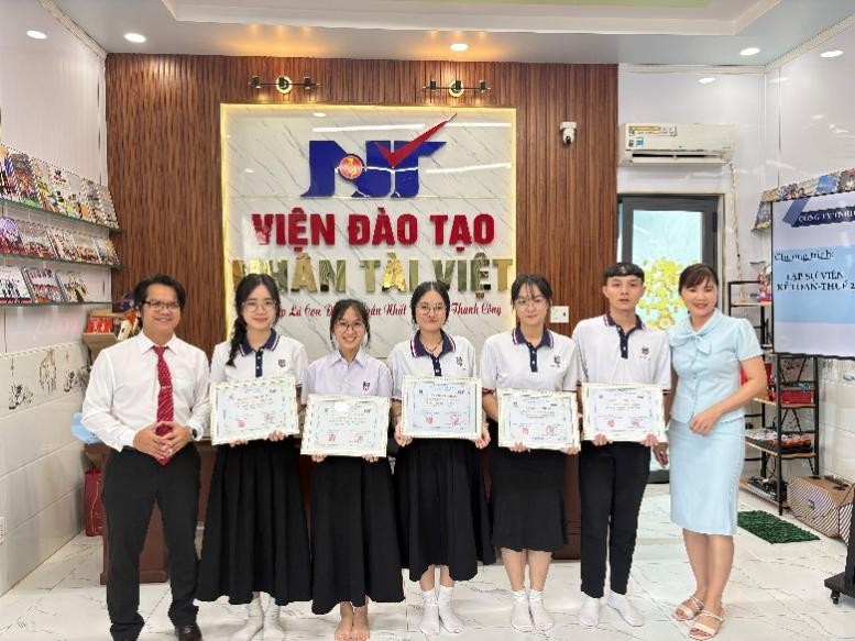 Công ty TNHH Kế toán – Kiểm toán Nhân Tài Việt trao giấy chứng nhận cho sinh viên tham gia