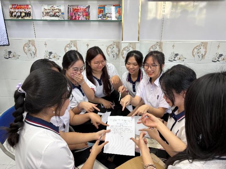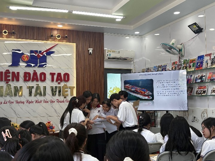 Sinh viên nhận đề và thảo luận sôi nổi trong lúc học